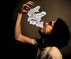 มีบางใครค่อนขอดคนกวี เช้าบ่ายเย็นค่ำทีไม่มีสาร ชมยอดหญ้าโยกระบำคือทำงาน หยดหมึกผลาญกระดาษว่าง สร้างอะไร แต่ละถ้อยแต่ละคำย้ำอารมณ์ วรรณศิลป์หุ้มห่มสัญญะใส่ อ่านไพเราะเสนาะหูหาเข้าใจ อุดมการณ์ซ่อนไว้ภัยความคิด แล้วยกตนข่มท่านคนอ่านถ้อย ว่าต่ำด้อยกว่าตนชนอภิสิทธิ์ ด้วยรอยเปื้อนหยาดหมึกอัมฤทธิ์ อภิเษกชีวิตด้วยอักษรา มีบางใครยกตน คนกวี เอาขี้ริ้วสามสีขึ้นคลุมหน้า อคติครอบคลุมคล้ายกะลา ผลงานตนบังตาน่าละอาย
