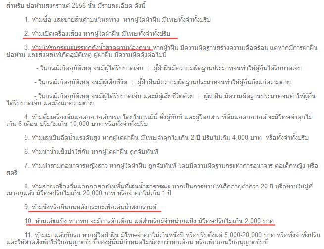 วันสงกรานต์เวียนมาปีห้าหกแสนตลกข้อห้ามตามกฎหมายเปิดเครื่องเสียงยังผิดจะบ้าตายห้ามซื้อขายบนถนนฉงนเหลือใจห้ามกระบะขนน้ำตามแห่งหนห้ามผู้คน เล่น,ขาย,แป้งแจ้งจับให้ห้ามผู้โดยสารรถเมาไม่เข้าใจหากผู้ใดฝ่าฝืนจับทันทีโอ้พระเจ้า....กฎหมายใครออกฟร่ะถ้าคิดจะบังคับกฏหมายนี้ประกาศเลยงดเล่นสงกรานต์ทีอาจจะดีกว่าข้อห้ามหยามเกินไปเอาหล่ะครับเชิญพี่น้องผองสหายโบกบ้ายบายสงกรานต์สงสารไหมเขาออกกฎแก้ปลายเหตุทุเรศใจช่างคิดได้หัวกระทิประเทศเรา
