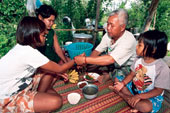ชอบกินปั้นข้าวกับคั่วกุ้งค่ะ กุ้งฝอยตัวเล็กๆ ไปช้อนกันมา แดดเปรี้ยงๆ ไม่มีกลัวดำ (เพราะดำอยู่แล้ว) ฮวกแกงใส่บักนัสอ่อนๆ ก็แซบคือกันเด้ออ้าย