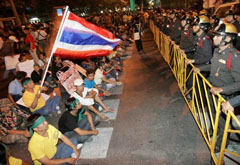 ณ วันนี้ที่ต่างคนต่างความคิด โยนความผิดว่าผู้อื่นทำขื่นขม ไม่มีใครฟังใครในสังคม หลงโง่งมกับอำนาจขาดไตร่ตรอง คนบางกลุ่มสร้างเวทีเสรีภาพ บอกให้ทราบสิ่งฉ้อฉลจนหม่นหมอง แฉเชิงชั้นเหลี่ยมคูผู้ปกครอง เพื่อพี่น้องเป็นแง่คิดได้ติดตาม มีสายสนกลในใครอยู่บ้าง บนเส้นทางการเมืองไทยให้ไถ่ถาม ใครสืบทอดทายาทใครไล่เรียงนาม ใครถูกหามเทียบเชิญเดินใต้ดิน อีกฟากฝั่งบอกว่าอย่าเชื่อถือ บางคนมือถือสากปากถือศีล ชอบยุยงให้เข่นฆ่าเป็นอาจิณ พูดเล่นลิ้นตะแบงให้ไทยแตกกัน จะฟังใครเชื่อใครให้สับสน เห็นต่างคนต่างคิดจิตหวาดหวั่น เกรงว่าไทยจะฆ่าไทยในสักวัน ถึงวันนั้นจะหม่นหมองนองน้ำตา หลังเลือดนองผองไทยจะได้คิด สิ่งถูกผิดทบทวนชวนปรึกษา พบทางออกบ้านเมืองเรื่องผ่านมา เป็นตำราบนกองเลือดเชือดเฉือนใจ.
