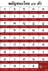เสียงกลาง: 9 ตัว ก จ ฎ ฏ ด ต บ ป อ จำง่ายสุดแล้ว ไก่ จิก เด็ก ตาย เฎ็ก ฏาย บน ปาก โอ่ง ๏ไก่ จิก เจ็บเท้าว่า ไก่หิว เด็ก ตาย อักษรปลิว เฟื่องฟุ้ง เฎ็ก ฏาย คล้ายเสียงคิว กลางกลุ่ม บน ปาก โอ่งมีรุ้ง ดื่มน้ำขำไข เสียงสูง: 11 ตัว ข ฃ ฉ ฐ ถ ผ ฝ ศ ษ ส ห ท่องว่า ขอ ฃวด ฉัน เถิด ผู้ เฝ้า ฐาน ห้าม ศึก ษา เสือ ๏ขอ ฃวด ฉัน เถิด ผู้ เฝ้า ฐาน ห้าม ศึก ษา เสือขาล ดุร้าย ระวังระไววาน เฝ้าอู่ ไฟดับห้องหับอ้าย นิ่มน้องกวาดถู เสียงต่ำ: 24 ตัว ค ฅ ฆ ง ช ซ ฌ ญ ฑ ฒ ณ ท ธ น พ ฟ ภ ม ย ร ล ว ฬ ฮ ต่ำคู่ มีเสียงคู่อักษรสูง 14 ตัว พ ภ ฟ ฑ ฒ ท ธ ค ต ฆ ซ ฮ ช ฌ ท่องว่า ๏ฅน เฒ่า ที่ ฆ่า ช้าง เอางา ซื้อ กะเฌอ คนตา บอดใบ้ โฑ พานด่า ธูปสา -รภาพ ฟ้า แฮ เสียงต่ำใจสูงไซร้ ท่านให้เพียรขนัม ต่ำเดี่ยว(ไร้คู่) 10 ตัว ง ญ น ย ณ ร ว ม ฬ ล ท่องว่า งู ใหญ่ นอน อยู่ ณ ริม วัด โม ฬี โลก ๏งู ใหญ่ นอน ขนดแล้ว ม้วนหาง หลับ ณ ริม วัด กลาง ป่าช้า โม ฬี โลกคือทาง สุขสงบ เรียนใหม่อีกครั้งน้า ก่อนกี้วัยชรา