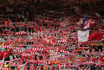คนเสื้อแดงหลายหมื่นดังคลื่นไหล ต่างร่วมจิตร่วมใจให้เป็นหนึ่ง มีสิ่งใดเล่าหนามาฉุดดึง หรือซาบซึ้งรักใคร่ผู้ใดกัน ? ทั้งชายหญิงเด็กผู้ใหญ่ไปพร้อมหน้า แม้ลมฝนแดดจ้าหาหวาดหวั่น เสียงร้องเพลงปรบมือสื่อสัมพันธ์ ยามสะใจชูกำปั้นสั่นสะเทือน เสียงฮือฮาดีใจยามได้เห็น คนที่เป็นดาวในใจได้เชือดเฉือน ใช้ชั้นเชิงต่อสู้ผู้มาเยือน คอยขับเคลื่อนรุกรับประทับใจ สวมเสื้อแดงพร้อมพรักเพราะสายเลือด วันแดงเดือด ศักดิ์ศรีที่ยิ่งใหญ่ เชียร์ทีมรัก หงส์ หรือ ผี จะมีชัย ต่างกันใย หงส์ หรือ ผี ก็ สีแดง!