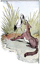 อีสปนิทานสั้น สอนลูก สานเรื่องอักษรผูก อ่านรู้ แฝงคติธรรมปลูก ความดี ปลุกจิตให้ต่อสู้ เสริมสร้างคุณธรรม นกกระเรียนมากด้วย ใจงาม เจอสุนัขใจทราม ร่ำร้อง เหตุกระดูกติดตาม คอเจ็บ มากนา หากช่วยข้าจะต้อง ตบให้รางวัล นกกระเรียนชาตินั้น คอยาว ขอสุนัขทำดั่งหาว ปากกว้าง จึงสอดปากคาบเอา ดูกออก มานา และถามหาค่าจ้าง พูดไว้รางวัล สุนัขมันเจ้าเล่ห์แท้ ใจมัว บอกเมื่อมึงสอดหัว ยื่นเข้า กูไม่กัดกินตัว จนหมด เป็นดั่งรางวัลเจ้า ที่ให้ตอบแทน นิทานสอนว่าไว้ เตือนตัว ทำดีกับคนชั่ว จักช้ำ เหตุที่ใจมันมัว มืดบอด ไม่คิดตอบคุณย้ำ ท่านผู้มีคุณ