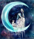 พระจันทร์เสี้ยวเกี่ยวดาว ณ ราวฟ้า หมู่ดาราพราวกระพริบระยิบฝัน ห้วงราตรีที่หงอยเหงาเฝ้ารำพัน ถึงคืนวันเลยล่วงช่วงชีวิต พระจันทร์เสี้ยวเปล่งแสงแรงอ่อนอุ่น หวานละมุนปลอบประโลมสมดวงจิต หวนคำนึงเสี้ยวชีวันอันน้อยนิด ได้แนบชิดอุ่นไอพิไลรัก ห้วงเวลาแสนสั้นดั่งจันทร์เสี้ยว ที่เกาะเกี่ยวหอมหวานซ่านทรวงหนัก ใจดั่งจันทร์ฝันดั่งดาวเพริศพราวนัก เด่นประจักษ์คู่เวหาทุกคราคืน ยามจันทร์เพ็ญเด่นนภาฟ้าใสสด ดาวระทดระทวยแสงสุดแรงฝืน เพียงริบหรี่หมองคล้ำแสนกล้ำกลืน เกินหยัดยืนสู้แสงแห่งจันทร์เพ็ญ เสี้ยวชีวิตเกาะฝันอันอบอุ่น หอมกลิ่นกรุ่นสุขใจไร้ทุกข์เข็ญ ยามหลับใหลสู่ฝันอันฉ่ำเย็น มิหลบเร้นดาวกับจันทร์มั่นกลมเกลียว จันทร์วันเพ็ญฝังใจกระต่ายน้อย แต่ฉันคอยเฝ้าฝันพระจันทร์เสี้ยว เพ็ญเต็มดวงโดดเด่นเพียงดวงเดียว จันทร์รูปเคียวเกี่ยวดาวพราวระยิบ.
