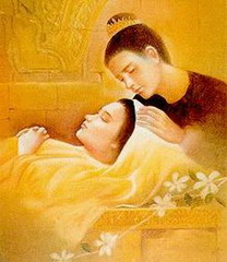 ๏ หยุดเศร้าเถิดดรุณีเพราะพี่ทะนุถนอม และเลิกวิตกเพราะโอษฐ์จะหอม..จะกล่อมขวัญ ด้วยฤดีเพาะรักมหัศจรรย์ พร้อมศรีกวีฉันท์..................วิไล ๏ ซึ่งเห็นเจ้าขณะทุกข์จะปลุกอุปนิสัย ระรื่นภิรมย์อุดมละไม...............หทัยหวาม พิศสิเนตรละมุนจะคุ้นนิยาม หัตถ์สองตระกองความ...........รตี ๏ อย่าหวั่นเลยนะจ้ะเจ้าจะเอานยะฤดี และเล่านิทานสราญทวี.............วิถีธรรม แทรกวิธีฉลาดและอาจจะขำ ขับกล่อมและน้อมนำ...............เสมอ ๏ เห็นไหมดาวนภะตกและนกก็จะละเมอ จะหยิบเสาะดาวสกาวเจอะเจอ......เสนอนวล แต่จะต้องยะแย้มแฉล้มและสรวล ถึงโฉมจะสมควร...................จะครอง ๏ หากเจ้าหนาวก็จะกอดตลอดปิติสนอง จะเมื่อยจะทนมิบ่นตริตรอง........มิหมองหมาง ด้วยฤทัยเพราะหวงและห่วงมิวาง ต่อรักพิทักษ์นาง....................อนงค์ ๏ อบอุ่นแล้วสิสมรเถอะนอนและละพะวง เพราะหัตถะไล้หทัยประสงค์....จะเยียวยา แม้นผิว์หลับและเกิดสะดุ้งผวา กล่อมแล้วนะแก้วตา..............อนันต์ ๏ ที่พี่เฝ้าปฏิบัติอนงค์พิถิพิถัน เพราะรักนะรักจะรักนิรันดร์......และสัญญา หวังอนงค์จะหายสบายอุรา จุมพิตและนิทรา...............นะครับ ๚ะ๛