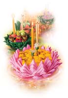 นั่งนับวันรอคอย...ลอยกระทง ใจประสงค์มุ่งหมายในบางสิ่ง จันทร์แจ่มฟ้าน้ำใสไหลเอื่อยอิง ริมตลิ่งเด็กน้อยนั่งคอยมอง มากผู้คนลอยกระทงคงคาธาร อธิษฐานน้อมใจที่ใสผ่อง ขอขมาสายน้ำตามครรลอง เดือนเพ็ญส่องแลลิบระยิบตา บ้างขอปล่อยลอยโศกพ้นโรคร้าย จงห่างหายทุกข์ภัยในสังขาร์ ขอความสุขสดชื่นรื่นอุรา บ้างขอมาพบคู่ผู้รู้ใจ อธิษฐานผ่านกลิ่นธูปและเปลวเทียน บ้างนำเหรียญมีค่ามาวางใส่ ปล่อยเคราะห์โศกกับกระทงลงน้ำไป ทิ้งทุกข์ไหลกับสายน้ำห้ามกลับคืน เด็กตัวน้อยคอยจ้องมองหาเหรียญ ลงว่ายเวียนน้ำเย็นทนเข็ญขืน เก็บเศษเหรียญหนาวล้นทนกล้ำกลืน เสียงครึกครื้นก้องสายชลไม่ยลยิน.