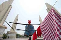 เอากฎหมู่ขู่กฎหมายน่าอายนัก เหมือนไร้หลักยึดมั่นย่อมหวั่นไหว เอากลุ่มตนอ้างว่าประชาธิปไตย กำหนดไว้ไม่ขัดรัฐธรรมนูญ ไร้อาวุธ อหิงสา มามือเปล่า ทั้งน้ำข้าวรวมพลังตั้งเป็นศูนย์ ประสานงานแกนนำคอยค้ำจุน แสนเคืองขุ่นอำนาจรัฐขัดชอบธรรม อหิงสาซ่อนกลบนทางเถื่อน คอยบิดเบือนมุ่งร้ายหมายตอกย้ำ ความแตกแยกชนชั้นนั่นแหละทำ ความเจ็บช้ำอำมาตย์ไพร่ใครกำหนด? เสียงระเบิดกระสุนปืนกลางคลื่นคน เลือดไหลล้นถนนนองต้องรันทด เสียงกรีดร้องร่ำไห้ใจสลด ใครคิดคดมุ่งร้ายทำลายใคร? เสรีภาพต้องงามตามขอบเขต ทั้งประเทศมากล้นคนส่วนใหญ่ ตามครรลองประชาธิปไตย ขออย่าให้ละเมิดเกิดคุกคาม จากเวทีที่สภาว่าทรงเกียรติ มายัดเยียดกล่าวอ้างอย่างเหยียดหยาม เอาเกียรติตนมาเหยียบย่ำทำต่ำทราม ถูกประณามใครก็รู้สู้แล้วรวย???