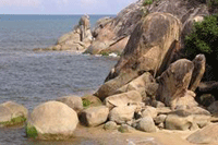 ชายหาดข้างโขดหิน        คลื่นรินเริงริมเพิงผา