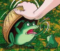 เห็นรูปแล้วนึกถึงกบที่น่าสงสารที่เราเคยกิน ช่วบ้านเขาเลี้ยงไว้ในกะลาครอบ จับลูกกบตัวเล็กๆ เอากะลาด้านที่มีรู ครอบกดไว้กับดินแน่น ราดน้ำเข้าไปในรูทุก ๆวัน ให้อาหารใส่ลงไปในรูกะลานั้น มีใส้เดือนบ้างเศษอาหารบ้าง อาหารเม็ดบ้าง วันละนิดละหน่อย กะลาเรียงเป็นแถว นานเท่าไรก็ไม่รูตอนเราไปมันโตคับกะลาแล้ว เขางัดกะลาจับมันออกมาตัวเหลืองอ๋อยอ้วนมาก ถกหนังผัดเผ็ดเลี้ยงแขก ก็อร่อยเหมือนกบธรรมดานี่แหละ