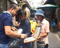 แถวบ้านผม..เหมารถมาจากต่างจังหวัด..แล้วก็แยกย้ายเดินขายตามที่ต่างๆ ข้างฟุตบาศ ตลาดนัด ข้างตู้เอทีเอ็มธนาคาร...บางทีคนขายหลายกว่าคนซื้ออีก.ไม่รู้เขาอยู่กันได้อย่างไร...อย่างวันนี้เดินผ่านเจ้าหนึ่งเหลือเยอะมาก...ถามเธอว่าเหลือเยอะอย่างนี้ทุกงวดเรยเหรอ..เธอตอบว่าบางงวดก็เหลือเยอะค่ะ...ต้องควักทุนรับผิดชอบเอง..ก็ต้องดิ้นรนแข่งกันเองในหมู่คนขาย....บางงวดก็ขายหมด..หนูก็พอเหลือค่านมลูกบ้าง..