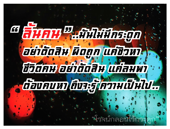 ลิ้นคน..มันไมีมีกระดูก อย่าตัดสินผิดถูก..แค่ชิวหา ชีวิตคนอย่าตัดสิน..แค่ลมพา ต้องคบหาถึงจะรู้..ความเป็นไป