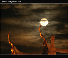ณ เดือนเพ็ญเห็นดวงพร่างช่วงโชติ แสงรุ่งโรจน์รัศมีจันทร์เฉิดฉันฉาย แจ่มกระจ่างสว่างฟ้าราตรีกราย เคลื่อนคล้อยย้ายโยงฝัน ณ ราตรี ยักษ์ราหูกู่ก้องอยากครองฟ้า ครอบจันทร์พล่าพิฆาตปราศราศี หลายคนหวั่นพรั่นพรึงตะลึงตะลี ยกมือขึ้นไหว้พลีบูชายัญ กลัวความมืดมาครอบระบอบโลก กลัวอับโชคเสื่อมสูญอาดูรหวั่น กลัวชีวิตผิดพลาดบาดเจ็บพลัน กลัวตัวสั่นหวั่นไหว .. ในความกลัว ความมืดบอดจอดอยู่รู้กับจิต ยอมอุทิศสินทรัพย์ดับสิ่งชั่ว หวังบูชาราหูปัดเป่ามัว ปล่อยมืดทั่วจางชังจะสังเวย เพียงคราวครู่ราหูคลายคล้ายมีหวัง คนประทังชีวิตมิเพิกเฉย แก้บนบานศาลกล่าวเล่ารำเพย ราหูเผยคลี่จันทร์คลายหวั่นใจ จึ่งจุดธูปเทียนดำดอกไม้แนบ ดำรูปแบบสิบสองอย่างนำวางใส่ หมายปรารถนาแรงหวังตั้งหทัย สิ่งใดใดได้สมหวังดังต้องการ นวลจันทร์คงเฉิดฉายคล้ายงามพักตร์ คนหลงรักราหู ... ดูสงสาร กลัวภัยมืดหมอกหม่นมาดลวาร กลัวชีวิตปลิดสังขาร ... ถึงกาลโรย แทนที่ควานสานใจใสสว่าง เพื่อกระจ่างเขลาขลาดปราศแรงโหย โมหะครอบกรอบทับกลับโอดโอย ร้องเรียกโปรยทดท้อ ... ขอเห็นใจ เมื่อขลาดเขลาดุร้ายเข้ากรายมา ใจอ่อนล้า ชอบ-ชัง หวัง-หวั่นไหว ขอเพียงนิ่งดิ่งจิตยามผิดไป จะผ่อนมืดหม่นได้ในทุกคราว อย่าบูชาราหูตัณหาเกิด บ้าเตลิดตามอารมณ์ ชื่น-ขม หนาว คลั่งไคล้หลงลงระเบิดเปิดเรื่องราว ขุดเรื่องฉาวร้าวร้ายมากรายกลืน เพี้ยน .. โง่งม จมจ่อมย้อมใจคิด หลงเห็นผิดเขื่องปมเกินข่มฝืน จมอัตตามหาภัยไร้จุดยืน ยากคลายคืนวัฏฏะวนกระวาย จันทร์ถูกครอบกรอบราหูดูให้ชัด เพียงเป่าปัดหยุดนิ่งอย่าวิ่งว่าย ถึงจังหวะพระราหูจะคลี่คลาย แสงใจฉายเปี่ยมชัดจำรัสงาม อย่าบูชาราหูหันกู่ก้อง เหตุมัวหมองครองอยู่คู่ฟ้าท่าม เกิดขึ้นได้ดับได้ในทุกยาม มัวไถ่ความไร้ประโยชน์ ... โปรดแจ้งใจ ความมืดหม่นบนจันทร์พร่างสรรค์ฟ้า รอเวลาเจิดจรัสชัดสุกใส จะเห็นเหตุเกิดดับกับเป็นไป ทุกสิ่งใช่แน่นอนวอนบูชา อย่ากลัวสิ่งอิงบอดมอดไหม้จิต อย่ามัวคิดกังวลบนท่วงท่า ณ กาลนี้ที่เป็นไปในเวลา จิตจ่อค่าแห่งกาล ... อย่าหวั่นใจ เมื่อจันทร์เพ็ญเห็นราหูดูให้ซึ้ง อย่าตะลึงตั้งสติตริตรองไตร่ เหตุเกิด-ดับกับมายาถ้าเป็นไป ยอมรับได้ปรับตัวทัน ... ไม่พรั่นพรึง.