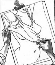 จรดลายสายเส้นเล่นกระดาษ ใช้ตากวาดเรือนกายปรายสมร มือสั่นสั่นไหวหวามตามชีพจร เนื้อบังอรเอมอิ่มลอบพริ้มเพรา ผิวพิลาสระวาดวางระวางจัด ไซ้สบัดตวัดวาดวิลาสเฉลา องคุลีลูบไล้ให้แสงเงา สะกดเจ้าจารไว้ต่างไกลตา - - - - - - - - - -ฮี้ฮี้