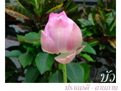 บัวน้อยลอยพ้นน้ำ เปรียบความงามที่วิไล พุทธองค์ทรงวางไว้ ดังชนคล้ายได้ปัญญา พอที่จะสั่งสอน อริยตอนมาเบิกฟ้า ทุกข์ครองโลกมายา พ้นหน่วงเหนี่ยวเกี่ยวนิพพาน.