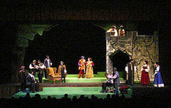 (องค์ ๑) หลากล้นคนครื้นเครงเพลงละคร พระเอกฟ้อนเกี้ยวนางสร้างรอยยิ้ม หยาดคำรักออกรสตามบทพิมพ์ กกกอดอิ่มอุ่นไอในสายตา นางเอกอายขวยเขินขับเดินหนี จากจุดนั้นสู่จุดนี้นอกแนวป่า ร้องระบำตามระเบียบดั่งตำรา จบเกี้ยวพาเหนื่อยนักจึงรักกัน (องค์ ๒) อุปสรรคแสร้งสร้างมาขวางคู่ จำแยกอยู่อย่างสลดจำอดกลั้น หาหนทางคลึ่คลายหมายฝ่าฟัน ด้วยรักนั้นยิ่งใหญ่จึงไม่ยอม (องค์ ๓) คำสัญญาหยอดเติมเพิ่มเชื้อไฟ ความคิดถึงห่วงใยใช้ถนอม ผู้คนชื่มชมนักในรักปลอม ด้วยรสรักหวลหอมให้ดอมดม น้ำตาไหลหลั่งรินจนสิ้นฉาก เมื่อรักพรากพลันพบจบสุขสม คู่พระ-นางห่างใกล้จึงไร้ตรม อุปสรรคลมลมผ่านพ้นไป (ม่านปิด) เสียงปรบมือชื่นชมคู่ชู้ชื่น มีรักมั่นมิเป็นอื่นเลิกรักไม่ แม้มากอุปสรรคสร้างถึงห่างไกล กลายที่ว่างเว้นไว้ยากได้เจอ (ห้องแต่งตัวนักแสดง) "แค่นิยายน้ำเน่าเอามาเล่น โธ่! ทำเป็นสะเทือนใจน้ำตาเอ่อ ช่างสมจริง! จำคำเขามาออเออ จบเช่นนี้เสมอเสมือนแสร้ง นี่ยังดี ค่าเข้าชมยังสมเหนื่อย ยืนจนเมื่อย ไฟส่องเสียหน้าแห้ง โธ่! รักแท้ล้ำค่าราคาแพง หาซื้อจากงานแสดงได้ชั่วคราว"