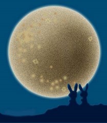 O ขอบฟ้างาม-ยามจับต้อง-ด้วยตาสอง หลับตาลอง-เอื้อมมือคว้า-กอดเมฆขาว อาทิตย์จม-เขี่ยให้พ้น-ขอบฟ้ายาว ต้อนรับดาว-พราวแสงเฉิด-บนนภา O ประกายดาว-สลับแสง-ดุจหิ่งห้อย ดีดดาวลอย-ด้วยมือสอง-ทั้งซ้ายขวา หมายให้ชน-พระจันทร์หล่น-ร่วงลงมา เตะจันทรา-ด้วยขาขวา-กะยิงยาว O เป้าหมายคือ-พระอาทิตย์-ที่ลับฟ้า ส่งจันทรา-พุ่งเข้าหา-ลอยเหินหาว ให้กระต่าย-ในพระจันทร์-เกิดเรื่องราว ต้องถึงคราว-เป็นกระต่าย-ตอตะโก O เพื่อเธองาม-กว่ากระต่าย-ในใต้หล้า แม้นบนฟ้า-เธอก็งาม-กว่ามากโข ฉันคนนี้-มอบความรัก-ใช่คุยโว แต่ที่โม้-ถึงไม่จริง-แต่จริงใจ