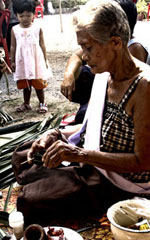 สวัสดีครับยาย...เป็นไงบ้าง เฮ้อ...ยังอ้างว้างเดียวดายไอ้หลานเอ๋ย อ๋อ...มิน่าล่ะผมเห็นยายนั่งเฉยเมย เฮ้อ...ก็ไม่เคยมีใครเลยมาสนใจ เป็นยังไงบ้างล่ะที่บางกอก ยังช้ำชอกรันทดไม่สดใส ข้าบอกแล้วก็ไม่เชื่อว่าอย่าไป ทำไงได้ก็ที่บ้านงานไม่มี นี่ขนมผมซื้อมาจากบางกอก ไม่เอาดอกคงกินยากมันหลากสี ซื้อมาแพงผมรับรองของผู้ดี ดูท่าทีคงเหนียวหนืดข้าฝืดคอ เอ็งไปหยิบย่ามมาให้ข้าหน่อย ของอร่อยอยู่ข้างในใช่ไหมหนอ เอ็งอย่ามัวเล่นท่าให้ข้ารอ น้ำลายสอรอไม่ไหวหรือไงยาย คุยอยู่นานขอคำเดียวข้าเปรี้ยวปาก มันอยากหมากตามคนแก่แก้ไม่หาย งั้นผมขอครกสากด้วยอยากช่วยยาย จะตำให้ไปพลางจัดหมากพลู ผมเห็นยายกินมาเมื่อคราเด็ก เอ็งยังเล็กนักหนาที่ข้ารู้ ถึงตอนนี้ยายยังแกร่งแข็งแรงอยู่ ก็หมากพลูที่เอ็งดูอยู่นี้ไง ผมขอตัวชั่วประเดี๋ยวยายเคี้ยวหมาก เห็นแล้วอยากเปรี้ยวปากยากทนไหว เอ็งจะลองหมากบ้างหรืออย่างไร คงไม่ไหวไม่หรอกครับเดี๋ยวกลับมา ดูหลังบ้านชานเรือนไม่เหมือนก่อน ผมเคยนอนร้องร่ำไห้ไร้เดียงสา ใต้เงาไผ่กอใหญ่ติดชายคา บัดนี้มาดูเวิ้งว้างร้างกิ่งใบ ผมขอนั่งสูบบุหรี่ตรงที่เก่า ตอนยังเยาว์เฝ้ายายเลือกตากเปลือกไม้ ดูใบพลูเขียวขจีดีนะยาย เออ...ข้าปลูกไว้พอได้กินไม่สิ้นเปลือง ที่บ้านเราผมว่าอากาศดี ไม่เห็นมีฝุ่นละอองดั่งปล่องเหมือง ไหนเอ็งบอกว่าเมืองกรุงเขารุ่งเรือง ไยขุ่นเคืองเรื่องร่างกายการหายใจ สงสัยเอ็งต้องเลิกยามาเคี้ยวหมาก แม้กินยากไม่งดงามตามสมัย แต่ไม่ขัดขุ่นเคืองเรื่องหายใจ ไร้โรคภัยยายรับรองว่าของดี เออ...เอ็งจะพักอยู่ที่บ้านนานแค่ไหน จะกลับไปวันใดให้สุขี ให้เดินทางโดยปลอดภัยสวัสดี ขอเอ็งมีความสุขกาย...สบายใจ ขอบคุณครับ.....ยาย บุหรี่เป็นสารเสพติดไม่ดีต่อสุขภาพ เยาวชนไม่ควรลอกเลียนแบบ นาคะพรรณ 26 กันยายน ๒๕๕๑ Photo by: อาคม นาคะ