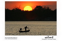 เรือลำน้อยล่องลอยอยู่ริมฝั่ง ดูอ้างว้างโดดเดี่ยวน้ำเชี่ยวไหล ธารน้ำใสไหลเย็นลัดเลี้ยวไป เรือลอยไกลธารไหลไม่หวนคืน มองดูริ้วทิวคลื่นไหลลื่นผ่าน ไหวสะท้านเห็นน้ำแหวกแยกเป็นผืน มองใบหน้าลุงชราผู้กล้ำกลืน เหมือนหลับตื่นคืนฝันผ่านล่วงเลย มองดูฝั่งทางไกลน้ำไหลผ่าน มีสะพานไม้เก่าข้างกกเตย ใบเขียวงามก่อไผ่ลำเบียดเกย ก่อนเราเคยลงเล่นเย็นฉ่ำใจ มีผักปอดลอยผ่านสะพานไม้ แตกช่อใบดอกงามสายน้ำไหล ช่อสีม่วงผึ้งแมลงบินตอมไต่ ล่องลอยไปไร้จุดหมายธารไหลริน บ้านหลังน้อยปลูกอยู่ที่ริมน้ำ ยามเย็นย่ำก่อไฟหุงหากิน ควันโขมงลอยไปไล่ยุงลิ้น นกกาบินลาลับกลับรังนอน ชายชราปล่อยเรือไหลไปตามน้ำ ในมือกำเส้นด้ายไม่พักผ่อน เลาะลงข่ายหาปลาตะวันรอน ปลาว่ายย้อนทวนน้ำติดข่ายเอ็น ได้ปลามากน้ำหลากน่าลมล่อง เก็บปลากองในเรือพอมองเห็น ได้แบ่งขายเก็บใว้กินยามจำเป็น ในยามเย็นตะวันลับกลับบ้านเรือน