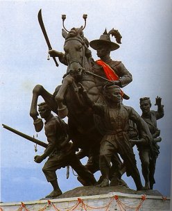 ๏ สมเด็จ....ปิ่นนเรศไท้...............ธนบุรี พระเจ้า......ปราบม่านมายี...........พินาศแพ้ ตากสิน.......กอบกู้ศรี...................สยามยศ....กระเดื่องแฮ มหาราช....ชาติไทยแล้................ราษฎร์น้อมพระนามถวาย ๚