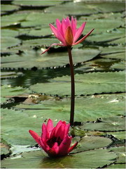 ไดเร็คเตอร์จีทีมัวร์ (Director G.T. Mroore) เป็นบัวผันพันธุ์ลูกผสม มีถิ่นกำเนิดอยู่ที่ประเทศสหรัฐอเมริกา นำเข้ามาประเทศไทยเมื่อ พ.ศ. 2514 ใบเป็นรูปไข่ ก้านใบ ก้านดอกมีสีน้ำตาลอมแดง ไม่มีขน ดอกดกและทยอยออกตามกัน บาน 3-4 วัน กลีบเลี้ยงด้านนอกสีเขียว ส่วนด้านในสีเหมือนกลีบดอกคือ สีม่วงเข้ม ปลูกใช้เป็นไม้ตัดดอกได้ดี เพราะก้านดอกและกลีบดอกแข็ง ปลูกง่าย และทนต่อโรคได้ดี คิดถึงนะคะ เลยแวะมาบ่อย ๆ พี่ดอกแก้วคงไม่ว่า แต่มะกรูดก็ว่าไปหาน้องดา บ้างในบางครั้ง
