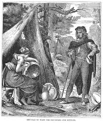เท้ารอนแรมไปตามป่าเขา  ครั้นถึงป่าไม้อันกว้างใหญ่แห่งหนึ่งเธอจึงเอ่ยถามชายขอทานขึ้นว่า