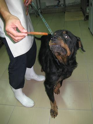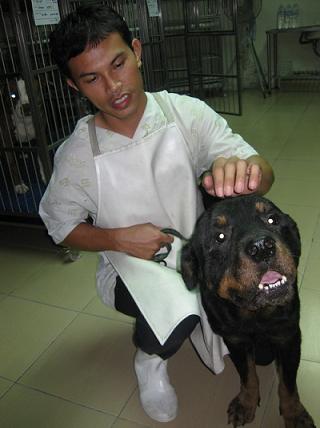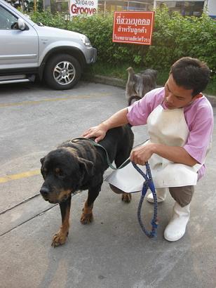 โด้โด้เป็นหมาอายุมากกว่า 5ปี ถูกเจ้าของนำไปทิ้งไว้ที่สถานกักกันหมาเขตประเวศ ไม่ทราบว่าเจ้าของเป็นใคร และที่มาที่ไปคือใคร รู้แต่ว่า หมาที่เจ้าของไม่ต้องการจะถูกนำไปทิ้งไว้ที่นั่น ซึ่งแน่นอน สถานที่ของรัฐ ที่ดูแลหมาของรัฐ การดูแลชองเจ้าหน้าที่ด้วยอาชีพของเค้า ไม่ได้ทำด้วยความรักและเมตตา หมาตัวนี้เวลาใครจะเข้าหาก็ต้องเอาไม้ทิ่มๆๆๆ ดันๆๆ เพราะกลัวเค้ากัด (ทั้งๆที่เค้าอาจไม่ได้กัดใคร หรือขู่ใคร เลย แต่ด้วยความเปนร๊อตไวเล่อร์ จะถูกปฏิบัติเช่นนั้นจนเกิดความเครียดและเพิ่มความดุร้ายมากขึ้น) โดโด้ถูกช่วยเหลือหมาด้วยความที่กลัวว่าไม่นานโดโด้จะได้รับเชื้อโรคที่มีสะสมอยู่มากมาย ในที่สุดก็จะ ป่วยและตายเช่นเดียวกับหมาตัวอื่นๆ ในที่สุดโดโด้ ก็ได้รับความช่วยเหลืออกมา จากคนๆหนึ่ง ที่มีศักยภาพไม่ดีนัก ให้ไปอยู่ในเชลเตอร์แห่งหนึ่ง โดโด้ต้องอยู่ในกรงแคบๆ หลังชนกรง ไม่ได้ออกมาจากกรงนั้นเนื่องจากผู้ดูแลกลัวจะโดนกัด แน่นอนว่าระยะเวลาสองเดือนเศษ โดโด้เปลี่ยนไป จากอารมณ์ดี จับเนื้อตัวได้ กลายเป็นหวาดระแวง ขู่ผู้อื่น วันที่ดิฉันไปพบโดโด้ และขอเค้าออกมา โดโด้ไม่ได้ขู่ดิฉัน เค้าดูเหงา เศร้า สีหน้าเต็มไปด้วยความสิ้นหวัง เพราะคงคิดว่าตัวเองต้องอยู่ในกรงเล็กๆแคบๆ ถึงเวลาก็กินข้าวในนั้น ขับถ่ายในนั้น สภาพที่ผอม บวกกับมีขี้เรื้อน และขาที่ดูจะลีบลงเนื่องจากไม่ได้เดิน เลยตัดสินใจที่จะขอเค้าออกมาไว้ที่ รพส.ศรีวรา (โรงพยาบาลสัตว์ศรีวรา) ก่อน โดยอาศัยความร่วมมือกับ อ.วราภรณ์ ได้ให้มาอยู่ที่นี่ โดโด้มาอยู่ท ี่รพส.ประมาณเดือนเศษ มีสภาพที่ดีขึ้น ร่างกายแข็งแรง อ้วนขึ้น สุขภาพจิตดีขึ้น มีความหวาดระแวงบ้าง เข้ากันได้ดีกับพี่เลี้ยง 2 คน คือ เจ๋ง กับ อ๊อฟ สภาพโดยทั่วไปโดโด้ขี้เล่น ชอบเล่น แต่ยังมีความหวาดระแวงคนอยู่ คนที่โดโด้จะเล่นด้วยได้นั้น ต้องให้เวลากับเค้า มาหาเค้าบ่อยๆ พูดคุยพาจูงจนโดโด้ให้ความคุ้นเคย และยอมรับ จากที่มาอยู่โดโด้กัดพี่เลี้ยงผู้หญิงคนหนึ่งไป1 ครั้ง เนื่องจากระหว่างที่เจ๋งพาจูงเดินแล้ว พี่เลี้ยงคนนี้ไปคว้าโดโด้เล่น เค้าตกใจและระแวงประกอบกับหวงตัวเจ๋งเลยกัดที่มือของพี่เลี้ยงคนนี้ทันทีแล้วก็ปล่อย เรื่องนี้ทำให้เปนที่โจษจัณว่าโดโด้ดุท้งที่เหตุการณ์เกิดขึ้นเพียงครั้งเดียว จากนั้นพี่เลี้ยงทั้งสองก็พาโดโด้จูงเดิน และยังเล่นกับโดโด้ได้ตามปกติ ดิฉันพยายามหาบ้านให้โดโด้ ทุกทาง ก็มีผู้ติดต่อกลับมาบ้างพอสมควร ซึ่งดิฉันก้เล่าความจริงให้ทุกท่านที่ติดต่อมาทราบ แต่ก็ได้