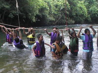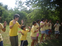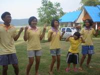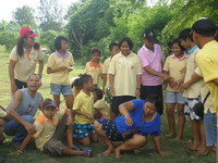 ฮัลโหล,,,หวัดดีอาจารย์ นี่ผันน่ะ ศุกร์ เสาร์ อาทิตย์ นี้ว่างไหมค่ะ ช่วยไปเป็นวิทยากรให้เด็กๆหน่อยค่ะ เสียงนักศึกษาสาวสวย แถมยังโสด ดังผ่านมือถือมาหาในเช้าวันหนึ่ง ว่าง,,,ค่ะว่าง ,,,ไม่ว่างก็จะทำให้ว่าง....เพราะรับปากผันไว้นานแล้วไม่ลืมหรอกค่ะ,,,,ตอบกลับไปด้วยน้ำเสียงเจือรอยยิ้มและมีความสุข ที่จะได้ไปจัดกิจกรรมให้เด็กๆตัวน้อยๆ ไม่มีค่าตัวนะอาจารย์ บอกไว้ก่อน เสียงผันนภาตอบกลับมา ไม่มีไม่เป็นไรแต่ขอมีผู้ติดตามไปด้วยน่ะ ได้รึปล่าว คนสวย ไม่มีปัญหา ถึงไม่ขอก็ให้ไปด้วยกันอยู่แล้ว งานนี้ขาดอาจารย์ดร.ได้ไง ใครจะถ่ายภาพ ทำวีดีโอ ทำซีดีแจกหล่ะจ๊ะ ผันนภาตอบเสียงกลับมาพร้อมเสียงหัวเราะ พรุ่งนี้แปดโมงเช้า จะแวะไปรับที่บ้านน่ะค่ะ ไปแก่งกระจานกัน ผันมอบเด็กๆและบรรดาทีมนักข่าวใหญ่ นักข่าวน้อย ที่จัดรายการวิทยุให้อาจารย์กระต่ายลุยได้เต็มที่ค่ะ ชอบ ชอบ ให้มา จัดไป ข้อสำคัญไปแล้วต้องร่วมกิจกรรมกันทุกคนน่ะค่ะ ไม่มีลูกศิษย์ไม่มีอาจารย์มีแต่เพื่อน พี่น้องกันน่ะผัน แค่นี้ค่ะพรุ่งนี้เจอกัน ด้วยวัยที่ไล่เลี่ยกันระหว่างกระต่ายกับผันนภานอกเวลาสอนเราจึงเหมือนเพื่อนสนิทกัน แต่ผันก็น่ารักที่ไม่ว่าเวลาไหนก็ยังให้ความเคารพกระต่ายในส่วนของอาจารย์ผู้สอน กิจกรรมที่จัดให้นักข่าวเยาวชนน้อยเป็นกิจกรรมที่ฝึกทักษะ การอยู่ร่วมกัน การคิดและแก้ปัญหาร่วมกัน สำหรับกระต่ายสนุกและมีความสุขมากที่ได้อยู่กับเด็กๆแถมได้แกล้ง อิๆๆกลับไปเป็นเด็กอีกครั้งสนุกไม่หยอกจะบอกให้มีการแบ่งกลุ่มตามฐาน มีชื่อฐาน และชื่อเล่นและท่าทางประกอบให้เด็กคิดท่าทางแต่ละคนพร้อมเพลงประจำกลุ่ม ผู้ใหญ่ที่มากับเด็กๆให้ความร่วมมือทุกคน ช่วยกันคิดท่าทางและแบ่งกลุ่มกันซักซ้อมให้นอนตามบ้านพักของแต่ละกลุ่ม น่ารักคะ ท่าทางแต่ละคนสนุกสนานกันจนลืมเวลา พักบ้างเล่นบ้าง ในแต่ละวัน จัดสันทนาการให้เด็กๆสนุกกัน มีเกมส์เหรียญบาท เกมส์สร้างบ้าน เกมส์ต่อคำ เกมส์ส่งบอล ตอนเช้าออกกำลังกาย ทานอาหารเช้า คุยเล่นสนทนากับเด็กๆและต่อให้เล่นเกมส์บอกต่อที่มีใจความว่า ตามีขายหอยยายฮอยขายหมี อยู่มาวันหนึ่งหอยของตามีไปกัดหมีของยายฮอย ผลปรากฎไม่มีใครบอกได้ถูก เลยถูกทำโทษกันทุกกลุ่ม ช่วงเย็น จะเล่นน้ำและค่อยทานข้าวและมีการแสดงรอบกองไฟ บรรยากาศแก่งกระจานสวยมาก บรรยากาศสบาย ออกาศดี บางคนนอนเต็นท์ บนบ้านพักชั้นสองมีที่นอนดูดาวยามค่ำคืน เด็กๆสนุกสนานกระต่ายก็แสนสนุก เสร็จจากิจกรรมสามคืนสี่วันแวะล่องแก่ง ล่องเรือภายเรือแข่งขันกันกับเด็กๆหัว
