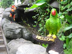 ...เจ้านกแก้ว(จำลอง)สีสันสดใส ถ้าไม่สังเกตุมองแทบไม่เห็นคะ เพราะอยุ่ด้านในป่าไปอีก ...![]()