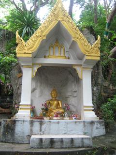 ...พระพุทธรูปปางห้ามญาติหรือเปล่า ไม่แน่ใจค่ะ จำลองบริเวณทางลงข้างบันได.....![]()