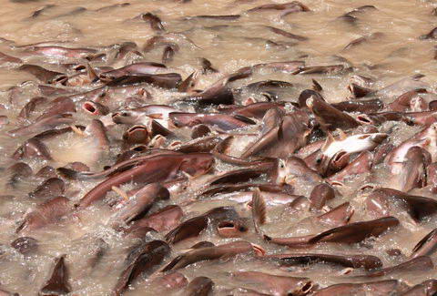 ที่นี่ปลาสวายเยอะมากค่ะ