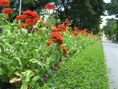 ดอกไม้ที่บนเกาะกลางถนนในสวนลุม .......................................................