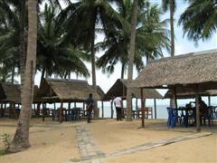 ริมหาดท่าชนะ ก็มีร้านอาหารที่สร้างเป็นกระท่อมไม้ไผ่