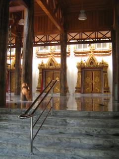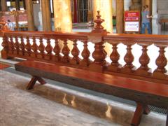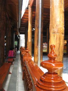 ด้านซ้ายมือของรูปหล่อหลวงพ่อสด เป็นระเบียงไม้ขัดมันวาว สวยจัง