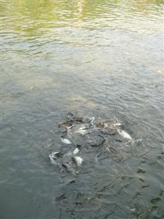 เดินไปริมน้ำ ซื้ออาหารเม็ดกะขนมปังให้ปลาด้วย ( พี่เมี่ยงบอกต้องรีบให้ปลา ก่อนที่ยัยวาจะแย่งปลากินหมด 5555)