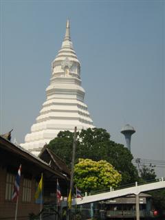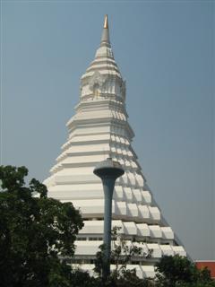 ภาพนี้ เป็นภาพพระมหาเจดีย์มหารัชมงคล เป็นเจดีย์ทรงสี่เหลี่ยมผสมทรงกลม มีฐาน 9 ชั้น เป็นศิลปะที่ผสมผสานกันระหว่าง ยุครัตนโกสินทร์กับยุคล้านนาเข้าด้วยกัน