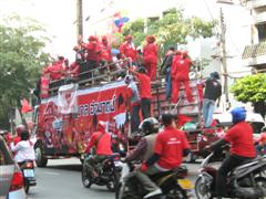 กลับบ้านกันดีกว่า ยิหวาเสื้อสีฟ้า เดินฝ่าดง(ทรีน)เสื้อแดง 5555