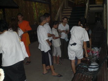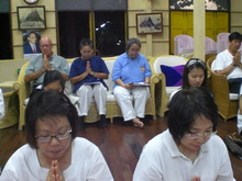 ใบหน้า แต่ละคน อิ่มแย้มแจ่มใส และ มิตรไมตรี บางท่านมีบ้างที่พูดคุย เรื่องการเมือง ในช่วงการเมืองร้อนระอุ ก่อนเวลาสวดมนต์