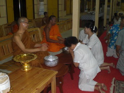 ผลปรากฏว่า หญิงวัยกลางคน ดุข้าพเจ้าว่า เป็นผู้หญิงทำอย่างนี้ไม่ได้น่ะหนู ไม่ดี แล้วบอกว่า กับพระกับเจ้าต้องระวังใส่บาตรก็อย่าให้ถูกตัวท่าน ตักข้าวใส่บาตรก็อย่าให้ทัพพีถูกบาตรจะตกนรก