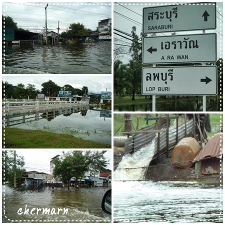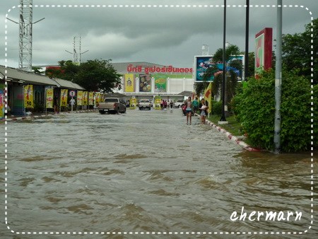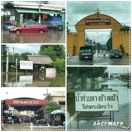ผ่านเขตทหารกรมทหารปืนใหญ่เห็นทหาร ยืนช่วยอำนวยความสะดวกรถที่ผ่านไปมา ตลาดเสาธง แม่ค้า แม่ขายต้องหยุดทำมาหารับประทาน ชาวบ้านเดือดร้อนมากค่ะ ไก่หมุนห้าลาวก็หยุดขาย เพราะไก่หายไปกับสายน้ำ และทางเข้าวัดหนองบัวขาว เข้าวัดพระบาทน้ำพุ น้ำท่วม รถวิ่งผ่านเข้าออก ได้เฉพาะรถยกสูง
