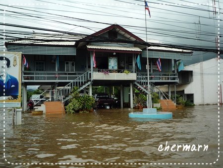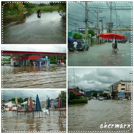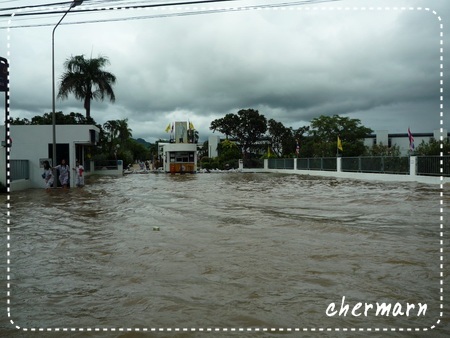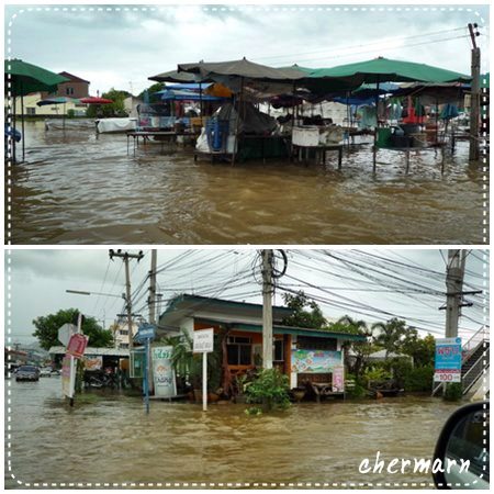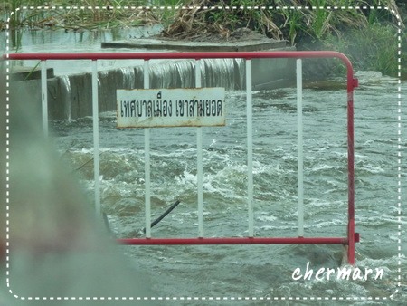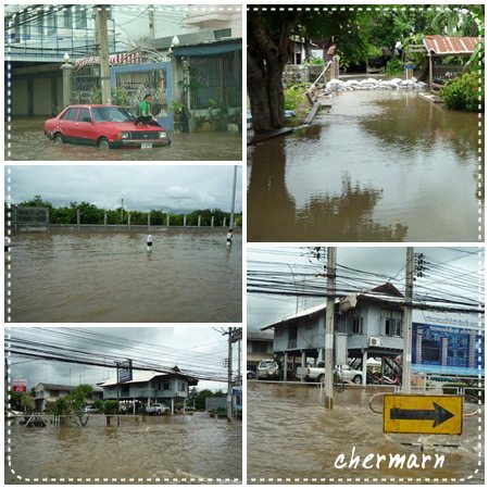 ตอนนี้ฝนหยุดตก น้ำคงระดับค่ะ แต่ข่าวล่ามาเมื่อเช้าว่า น้ำทะลักคลองชลประทานหลายพื้นที่แล้ว อาจจู่โจมบ้านเฌอทางด้านหลังค่ะ ตอนนี้เฝ้าระวังภัยเช่นกัน หวังว่าน้ำจะมาไม่ถึงบ้านเรา สาธุ