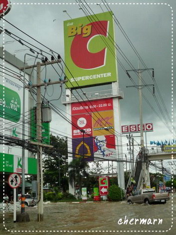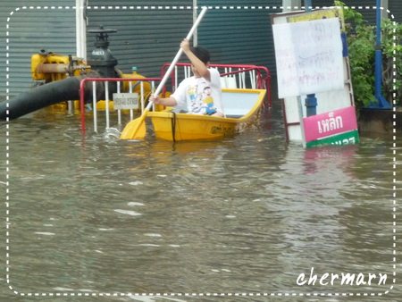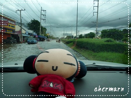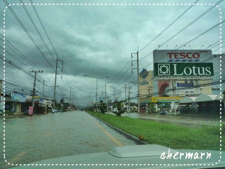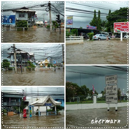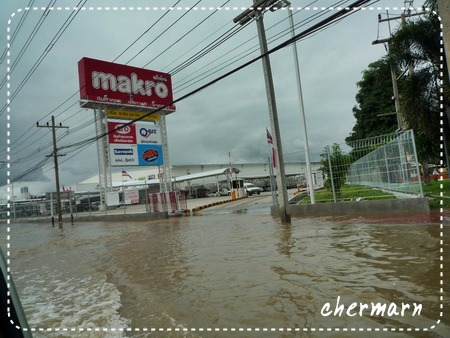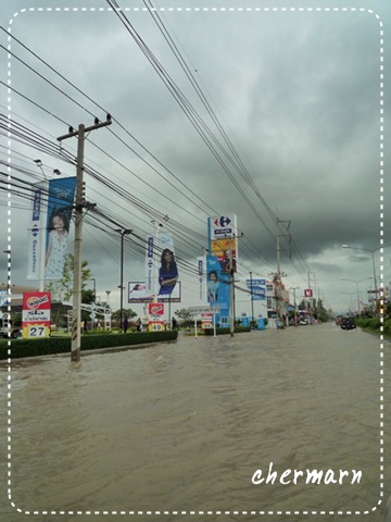 โห....ขนาดท่วมกระโปรงรถหกล้อได้อ่ะ กึ๋ยแต่แถวปากเกร็ดฝนไม่ตกมาสองวันแล้ว เฌอ