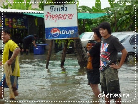 11..รอด.บ้านยา เกือบไปแระ แต่ถนนทางเข้าบ้านยาน้ำยังท่วมอยุ่ ส่วนที่ร้านยา น้ำก็เกือบเข้าแน่ะดีที่ฟ้าฝนสงสาร หยุดตกให้สองวันแระ น้ำเลยลดระดับได้ ตอนนี้เขาเร่งระบายน้ำลงคันคลองชลประทานกัน คลองก็ปริ่มแระ น้ำใกล้ถึงคอสะพานแระ โชคดีที่ปลอดภัยอ่ะ..ส่วนบ้านเฌอไม่ท่วมอ่ะจ้า นักข่าวหัวเห็ดโคนรายงาน