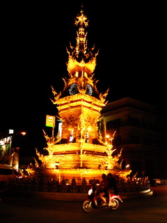 ฉันขับมอเตอร์ไซด์เรื่อยเฉื่อย ยัยต่ายบอกว่าขับไปตามป้ายที่บอก หลงบ้างเจอบ้างแต่ขอบอกว่า สบาย ๆ ที่แรกฉันตามหาจนเจอผเกาเหลาเลือดหมู สหรส มื้อที่สองในเชียงรายอิ่มและสุขใจ แล้วแวะเลยไปจองตั๋วกลับขอนแก่นที่บขส.ใหม่ ก่อนมาวนเวียนในเวียงต่อไป ฉันวนเวียนอยู่หอนาฬิกา ตลาด