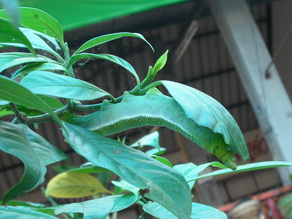 เราหยุดรถกินข้าวกันที่หล่มสัก หลังจากอิ่มหมีพีมันฉันก็พร้อมที่จะวิ่่งตามตะวันอีกสักที ก่อนที่จะก้าวขึ้นรถ ฉันเหลือบเห็นมูลของเจ้าตัวเขียวตกเรี่ยรายบนทางเท้ามากพอดู ฉันสอดส่ายสายตาหาเจ้าของอยู่นานกว่าจะพบ เจ้าเพื่อนตัวน้อยของฉันมันกำลังนอนอย่างเป็นสุขอยู่ใต้ใบดอกพุด
