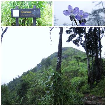 นักเขียนนิยาย จะเขียนนิยายสักเรื่องก็คงต้องมีพล็อตเรื่อง... แต่ฉันเป็นคนเล่าเรื่อง..แล้วควรต้องมีพล็อตเรื่องหรือเปล่าหนอ จะเริ่มต้นอย่างไรและจบเช่นไหน เขียนแล้วคนอ่านจะยิ้มตามหรือบ่นว่ายายบ้านี่มาเขียนอะไรนะ.. ก็จบบัญชี..ไม่ได้จบอักษรศาสตร์ นิเทศศาสตร์ หรืออะไรที่เป็นศาสตร์ทั้งหลาย.. นอกเรื่องมาก็มาก..เข้าเรื่องดีกว่าเนอะ เดี๋ยวอาจต้องมีแจกแม็ค 77 ที่ไม่ต้องเติม....ลงไป (อ่านว่า จุด จุด จุด) เมื่อมีการเตรียมการ เราก็ต้องมีการเดินทาง เค้านัดสามทุ่มเราไปถึงกันสองทุ่มด้วยความไม่แน่ใจในสภาวะรถติด ฝนตก ซึ่งเอาแน่นอนไม่ได้สำหรับกรุงเทพฯ เมืองฟ้าอมร.. ปั๊ม ปตทสนามเป้า เป็นที่นัดหมาย เซเว่นมี ร้านกาแฟมี (ปิดแล้วแต่ใช้เป็นที่นั่งรออยู่หน้าร้าน) หิวเมื่อไหร่ก็แวะมา.....สโลแกนประจำร้าน นั่งรอไป กินไป คุยไป ถกปัญหากันไป ไปทำอะไร ไปดูอะไร มันมีอะไร สำหรับฉัน..บนนั้นมีดอกหงอนนาค มีต้นไม้ มีหลักเขตไทยลาว มีอะไรอีกละ (ส่วนเพื่อนร่วมทางถูกฉันหลอกมา) เวลาผ่านไปไกด์ยังไม่มา รถยังไม่มี แม่ครัวยังไม่เจอ..(ไม่มีสัญญาณตอบรับจากหมายเลขที่ท่านเรียก..ล้อเล่นจ้า) หลายคนกระวนกระวาย จนต้องโทรหาคุณเอกนักป่าไม้หนุ่มที่ผันตัวเองมาทำเรื่องท่องเที่ยวแบบแบ๊คแพ๊ค..คุณเอกบอกว่าทำไมมากันเร็วจังผมนัดสามทุ่มนะ (คุณเอกขา..นี่มันสามทุ่มกว่าแล้วค่ะ) จนถึงเวลาอันสมควร และควรเป็นฤกษ์ดีหรือเปล่านะ เราออกเดินทางด้วยรถตู้ (ที่ท้ายเกือบปิดไม่ได้..ด้วยของและด้วยสภาพรถ) คุยกันไป จนหลับกันไปและแล้วเราก็มาถึง..ถึงไหนล่ะในเมื่อระยะทางเกือบยี่สิบกิโลกว่าจะถึงอุทยานภูสอยดาวเส้นทางขาดเป็นระยะสั้น ๆ แต่ก็เล่นเอาผู้ร่วมทางจำนวน 5-6 คันจอดสนิทแล้วก็คิดว่าจะไปอย่างไร ไปได้หรือไม่ สุดท้ายก็ไม่เกินความสามารถของผู้อยากเที่ยว ด้วยการเดินข้ามเส้นทางที่ขาดเพื่อให้รถเปล่าวิ่งไปรอเราข้างหน้า สุดท้ายฉันก็มาถึงตีนภู..แต่ละคนจัดการกับตัวเอง แล้วก็ไปจัดการกับท้องตัวเองเพื่อเตรียมตัวเดินทางขึ้นภูที่ระยะทางไม่ไกลแค่ 7.5 กิโลเท่านั้นแหละ.. นับจากตีนภู..จนผ่านเนินลูกแล้วลูกเล่า แค่สี่ห้าเนิน..หุหุ..แค่ถึงเนินส่งญาติก็อยากส่งแต่ผู้ร่วมทางให้ขึ้นไป (ได้ไงเล่า..เมื่อเราอยากมา) ทางเดินดีค่ะชวนให้นึกถึงภูกระดึง..ภึงกระดูขึ้นมาทันใด จากส่งญาติแล้วไปไหนหนอ.อ้อ..ปราบเซียนไงคะ ปราบจนเซียนหงายหลังกันเลยทีเดียว ระหว่างทางก็ชมนก (ซึ่งไม่มีให้เห็น) ชมไม้ซึ่งมีตลอดทางแซมด้วยดอกไม้สวยงามบ้างประปราย รวมถึงฝนพร่ำๆ ที่มีมาเป็นระยะๆ พร้อมน้ำเหงื่อที่เต็มตัวตลอ