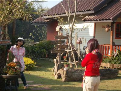 จริงแล้วไม่เคยมีโปรแกรมนี้ แต่จู่ๆวันพฤหัสเพื่อนรักโทรหา เสาร์ทิตย์นี้เราว่างฟร่ะ หาที่ลงกันเฮ๊อะ เข้าทางฉัน เราก็ว่างงงง อิอิ เพื่อนรักบอกเวลาน้อยขอสถานที่ใกล้ๆแล้วกัน ตกลงกันว่า ภูเรือ จ.เลย ห่างจากพิษณุโลกเพียง 180 กม.โดยประมาณ จากนั้นเพื่อนรักก็หาเพื่อนร่วมทาง ก็มีคนหลวมตัวมาด้วยเพิ่มอีกหนึ่งคน หนึ่งคนที่เราพอใจมากที่สุด ด้วยเราไปด้วยกันมาหลายทริปแล้ว เช่น พืชสวนโลก(ครั้งแรก) ปาย ปางอุ๋ง เขาค้อ เป็นต้น ล้อหมุนวันเสาร์สิบโมงกว่าๆ ฉันเป็นฝ่ายตระเวณรับเพื่อน คนแรกอยู่ในเมืองใกล้ๆกัน แต่อีกคน อยู่อ.วังทอง 20 กม.โดยประมาณ แต่ภูเรือ ต้องผ่านอยู่แล้วไม่ใช่ปัญหา สิบเอ็ดโมงกว่าๆ ล้อหมุนจริงเสียที เพื่อนรักขับรถ ส่วนฉันขออาสานอนอยู่เบาะท้าย(เหมือนเดิม) ค่อยๆขับไปทางอ.นครไทย แวะทานอาหารเที่ยงกัน ผัดกระเพรามื้อแรกอร่อยมาก เป็นร้านเล็กๆข้างทางแถวๆ บ้านเนินเพิ่ม จากนั้นก็ขับมุ่งสูอ..ด่านซ้าย ช่วงอ. ระหว่างทางเราแวะที่พักริมทางอยู่ด้านขวามือ ออกจากอ.นครไทยไม่ไกลมาก ห้องน้ำสะอาด ที่นั่งเย็นสบาย กาแฟบริการตัวเอง พร้อมราคาที่เราจ่ายเองเท่าไหร่ก็ได้ ใครผ่านแถวนี้แวะได้นะค่ะ เราถ่ายรูปกันเล็กน้อย ก็ออกเดินทางต่อ ระหว่างทางเพื่อนอยากเห็นดอกซากุระ(ดอกนางพญาเสือโคร่ง) เกษตรที่สูงของอ.ด่านซ้าย อยู่ทางแยกขวามือป้ายบอก 19 กม. เราแวะเข้าไปค่ะ ทางสูงชันโค้งพอประมาณ ไปถึงไม่มีดอกซากุระให้เห็น ด้วยคงโรยหมดแล้ว ต้นซากุระอยู่ไหนหว่า หากันไม่เจอ ไม่มีเจ้าหน้าที่ให้สอบถามแม้แต่คนเดียว กะว่าจะถามไว้เผื่อปีหน้าจะมาดูใหม่ ก็เลยกินแห้วกัน เก็บรูปเล็กน้อย ขับรถลงมาเข้าสู่ตัวเมืองอ.ด่านซ้าย แวะดูพิพิธภัณฑ์ผีตาโขน นิดหน่อย จริงแล้วตั้งใจแวะนมัสการพระธาตุศรีสองรักด้วย บังเอิญเพื่อนอีกคนสวมเสื้อออกสีแดง ไม่อนุญาตให้เข้า ก็เลยขอไว้โอกาสหน้าแล้วกันค่ะ จากนั้นมุ่งสู่อ.ภูเรือ จริงแล้วเราเตรียมเต้นท์ ที่นอน หมอน (ขาดมุ้ง) ไปด้วย คิดว่าอาจนอนบนอุทยานภูเรือ หากหาบ้านพักไม่ได้ เพราะไม่ได้จองล่วงหน้า ระหว่างทางก่อนถึงตัวอำเภอประมาณ 5 กม. เพื่อนบอกมีรีสอร์ทใหม่เพิ่งสร้างเสร็จช่วงก่อนปีใหม่น่ารักมาก น่าพัก เราแวะเข้าไปสอบถามราคาห้องพัก หลังละ 700 บาทเนื่องจากเป็นช่วงโลว์ซีซั่น แต่สามารถต่อรองราคาได้ 600 บาท เราเลือกพักที่นี่กัน ด้วยเด็กที่รับจองที่พักบอกว่าเมื่อคืนฝนตก กลัวกางเต้นท์นอนแล้วจะต้องเปียกฝนกันค่ะ จากนั้นเราก็ถ่ายรูป มีรีสอร์ทตรงข้ามกัน เป็นร้านอาหารด้วย แวะทานมื้อเย็น พร้อมกับขับรถออกไปเที่ยวต