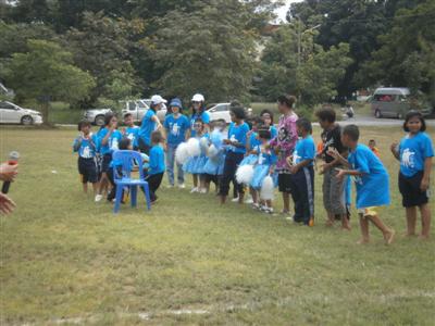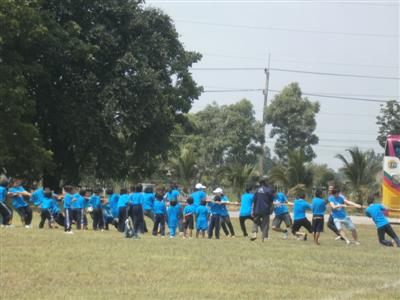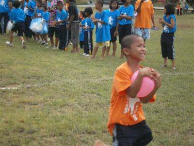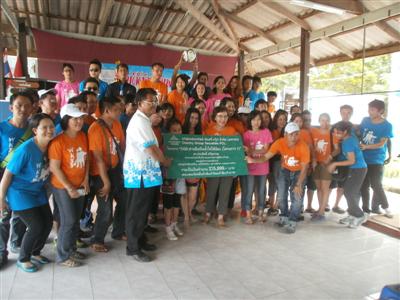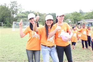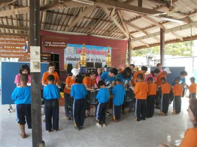 เป็นสมศรีอยู่มาสิบกว่าปี นานๆจะมีโอกาสได้ไปร่วมกิจกรรมกับทางบริษัทสักครั้ง ด้วยกิจกรรม "สานฝันปันน้ำใจให้น้อง" มอบอุปกรณ์การเรียน ทุนการศึกษาและอุปกรณ์กีฬา ณ โรงเรียนวัดเขาสมุก อ.ลาดยาว จ.นครสวรรค์ เมื่อวันเสาร์ที่ 29 กันยายน 2555 ล้อหมุนเมื่อเวลา 07.00 น.ที่จ.พิษณุโลก มุ่งหน้าสู่จังหวัดนครสวรรค์ โดยนัดกับสาขานครสวรรค์ไว้เวลาประมาณ 9.00 น.เพื่อเดินทางพร้อมกัน ไปถึงที่นัดหมายก่อนเวลานิดหน่อย สาขานครสวรรค์เตรียมข้าวเหนียวห่อเป็นอาหารมื้อเช้าไว้ให้พร้อมขนม และกาแฟ (จริงแล้วเราก็เตรียมข้าวเหนียวเผื่อสาขานครสวรรค์อยู่ในรถเช่นกัน) ประมาณ 9.30 น.ก็ออกเดินทางไปโรงเรียนเขาสมุก ซึ่งห่างตัวจังหวัดประมาณ 30 กม. ก่อนเดินทางไปโรงเรียน ฟังจากชื่อก็คิดไว้ว่าน่าจะทุรกันดานไม่มากก็น้อย น่าจะมีภูเขาล้อมรอบ แต่พอไปถึง แหะ...โรงเรียนอยู่ติดกับถนนใหญ่ และตัวอาคารก็เหมือนโรงเรียนทั่วไปที่อยู่ในระดับโอเคทีเดียว ที่ประทับใจก็คือ ห้องน้ำ สะอาดมากค่ะ คณะของพวกเราเดินทางไปถึงโรงเรียนก่อนคณะที่มาจากสำนักงานใหญ่ พอไปถึง ก็แปลกใจ เห็นน้องนักเรียนสวมเสื้อเหมือนเราทั้งหมด คือแบ่งเป็นสองสี สีแสดกับสีฟ้า น้องๆกำลังเล่นกิจกรรมกัน มีเชียร์ลีดเดอร์แบ่งเป็นสองสี พอไปถึงพวกเราก็ลุยกันเต็มที่ น้องกำลังเล่นชักเย่อกันอยู่ พี่ๆป้าๆ รีบโดดลงไปช่วยสีของตัวเอง สนุกสนาน ลืมวัยกันไปชั่วขณะ ดึงกันสามรอบ ย้ายฝั่ง สนามลื่นมาก ด้วยฝนตกเฉอะแฉะ ล้มระเนระนาด ได้แผลมาคนละเล็กละน้อย แต่ขอบอกว่า สนุกม๊าก ไม่ได้เล่นอะไรแบบนี้มานานแล้ว ต่อด้วยวิ่งเปรี้ยวโดยให้น้องเล่นก่อน ตามด้วยพวกเราแยกสี แยกชายหญิง เป็นเกมส์การเล่นที่สนุกมาก ด้วยฝนตกหนักเพิ่งหยุดไป สนามแข่งก็ลื่น ไม่ได้ใช้ไม้ถือเหมือนเคยเล่นตอนเด็ก แต่ให้อุ้มลูกโป่งใส่น้ำลูกใหญ่โดยมีกติกาว่า ห้ามลูกโป่งแตก จะจับแพ้ทันที และหากสีไหนตามทัน สีนั้นก็จะชนะไป ฉันซึ่งอยู่ทีมสีแสด ก็วิ่งได้นิดเดียวลื่นล้มลูกโป่งแตกน้ำกระจายเปียกปอนไปทั้งตัว และโดนจับแพ้ เพื่อนบอกโห...ไม่น่าเลย แหะ ขอโทษจริงๆสนามมังลื่น รีบๆเลยร่วง จากนั้นพวกเราก็แจกรางวัลเล็กๆน้อยๆที่เตรียมมากันเองให้กับน้องๆ คณะจากสำนักงานใหญ่มาถึงใกล้เที่ยง ประมาณ 50 คน ก็รับประทานอาหารกัน ซึ่งทางโรงเรียนจัดเตรียมไว้ให้มากมาย โดยมีก๋วยเตี๋ยวลูกชิ้นปลากราย หมูสับ (ลูกชิ้นปลากราย ที่จ.นครสวรรค์ขึ้นชื่ออร่อยมาก) ส้มตำ ไก่ทอด ขนมจีน มีทั้งน้ำยา น้ำพริก แกงเขียวหวาน ขนมไข่หวาน ไอศครีม อาหารที่จัดไว้ อร่อยและมีเยอะมากให้รับประทา