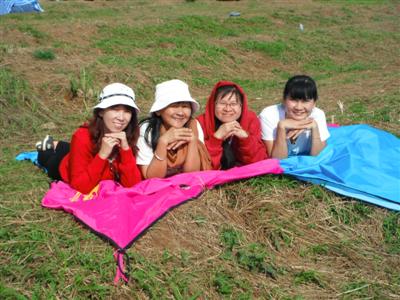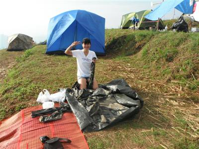 ตื่นเช้ามาตอนหกโมง ด้วยความระโหยระเหี่ย ได้ยินเสียงเต้นท์ไหนไม่ทราบ พูดคุยหัวเราะกันได้อร่อยมากๆ ขำกันตลอดการสนทนา เมื่อคืนนอนไม่หลับไม่ทราบคันอะไรมากมาย เกาโน่นนี่นั่นตลอดคืนเลย เอ...เราก็ซักทุกอย่างทั้งผ้าปูนอน ผ้าห่ม เสื้อกันหนาว นี่นา