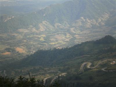 มองลงไปด้านล่าง เห็นถนนคดเคี้ยว