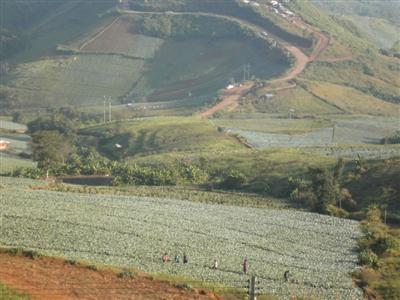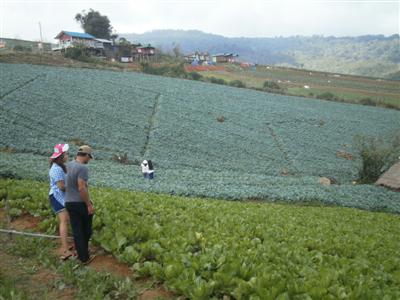 มองจากด้านบนบริเวณชมวิวเห็นแปลงกะหล่ำปลีด้านล่าง
